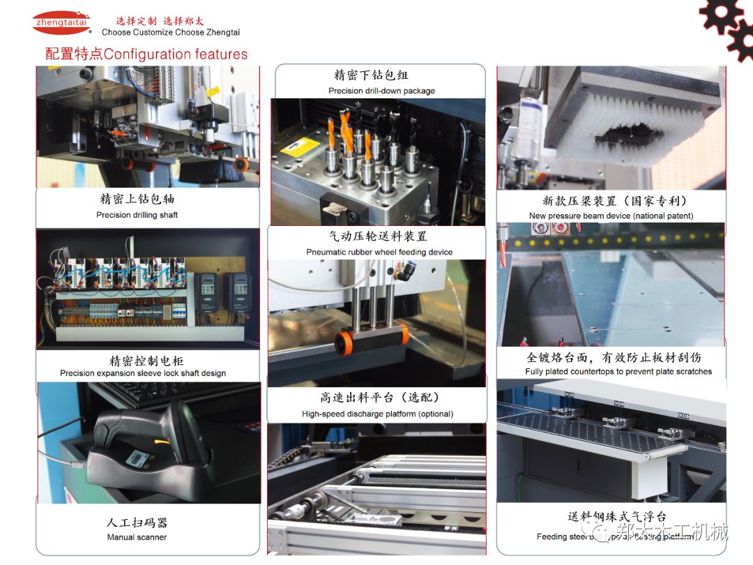 合理的鉆軸布局分布, 前后均采用鍍烙板布局,有效防止板材刮傷刮花。 Reasonable drill axis layout distribution,